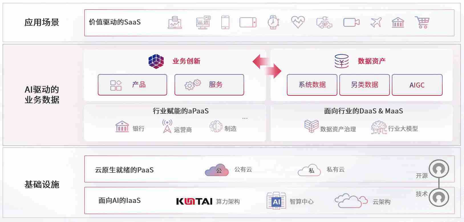 数字时代,,围绕企业数字化转型的关键要素,,,z6com尊龙数码开创性的提出数云融合战略和技术体系框架,,,,着力在云原生、、、、数字原生、、AI原生和信创产业上架构产品和服务能力,,为处在不同数字化转型阶段的快消零售、、、、汽车、、、、金融、、、医疗、、、、政企、、、、教育、、、运营商等行业客户提供泛在的敏捷IT能力和融合的数据驱动能力,,,,构建跨界融合创新的数字业务场景和新业务模式,,助力企业级客户建立面向未来的核心能力和竞争优势,,全面推动社会的数字化、、智能化转型升级。。